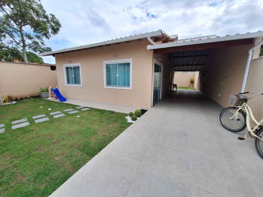 Composta por 02 quartos (sendo 01 suíte), ampla sala, cozinha espaçosa, banheiro social, área de serviço fechada, garagem coberta para mais de 01 carro, lindo jardim e quintal gramado.